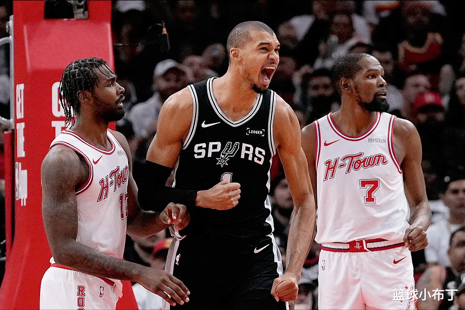 最离谱的是,他还具备媲美后卫的运球变向和投篮能力,面框单打时,能靠着节奏变化突破得分;低位背身时,能利用脚步完成终结;外线还能稳稳命中三分,得分手段全面又高效。他本赛季场均得分24.2分、篮板11个、盖帽2.8个,这三项数据均位列联盟前列,还多次单场打出30+10+5的统治级表现,妥妥的马刺最可靠的核心。