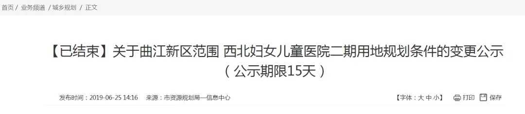 在2019年,西安市自然资源和规划局发布了《关于曲江新区范围西北妇女儿童医院二期用地规划条件的变更公示》,项目二期规划进入大众视野。