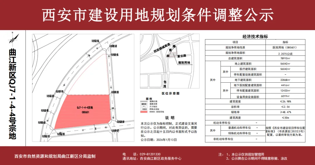 1月13日,曲江新区官网发布了《曲江新区QJ7-1-4-4号宗地公示》,值得关注的是,该宗地是西北妇女儿童医院二期项目用地。