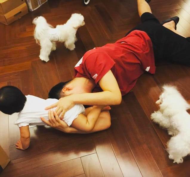从曝光的陈赫在家里学狗爬的照片来看,原来张子萱除了养女儿以外,还养了两只可爱的小狗啊。也难怪陈赫爬起来的时候那么像狗爬,想必是日常见多了,也就不自然的模仿了。但陈赫也不是因为无聊才学狗爬的,而是因为想和女儿安安玩到一起。
