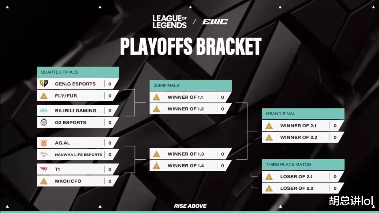 因为今年EWC石油杯的赛程比较紧,所以第一天开赛就打了八场BO1,并且HLE和G2战队成功拿到两胜,已经确定晋级淘汰赛了,对于这个结果没有丝毫意外,就是有点心疼GAM和C9,刚打两场比赛钥匙就被碾碎了,以9个小时刷新联盟国际比赛最快淘汰速度,不过根本来不及悲伤了,因为LPL队伍很快就要遭殃了,淘汰赛抽签已经出来了,AL对战HLE战队,BLG对战G2战队,GEN对战FLY或者FUR战队,T1对战MKOI或者CFO战队。