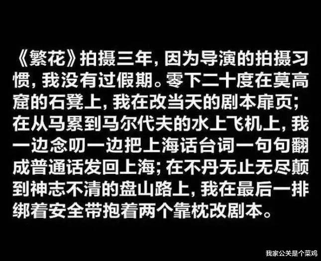公众人物因内容翻车事件并不鲜见。此前,编剧秦雯在陈述自己拍摄繁花3年从未休假时,也曾有过以下言论: