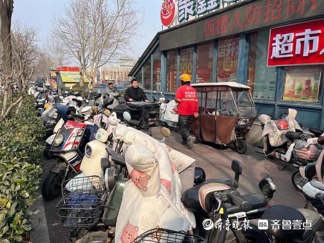 1月29日,情报员“Qi25639”向齐鲁晚报官方客户端齐鲁壹点情报站发来一则情报,在济南和谐广场纬十二路两旁的自行车道上停放了大量的电动车和三轮车,由于占道停放导致道路堵塞,使得行人步行的空间不足,带来交通不便。