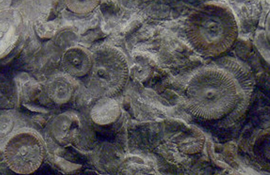顺便讲一下,在属于海百合的史前巅峰时代,它们的种类高达5千多种,因此它们也留下了各式各样的化石,比如说像下图这样的化石,就很容易被我们认为是一种古币(并且还是成串的)。