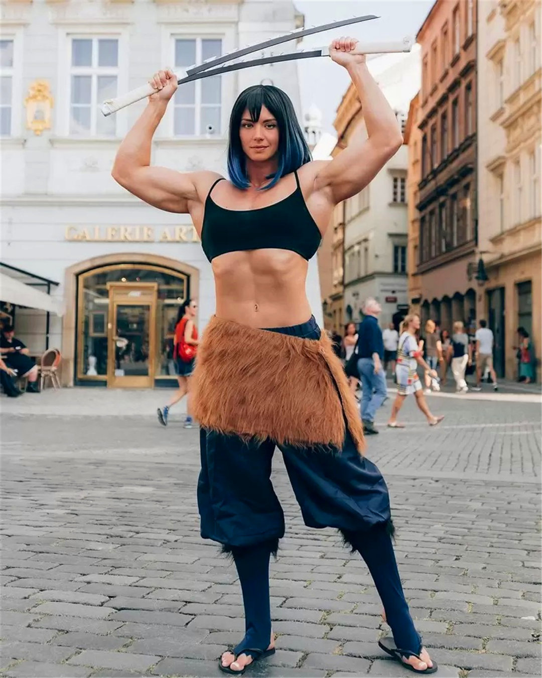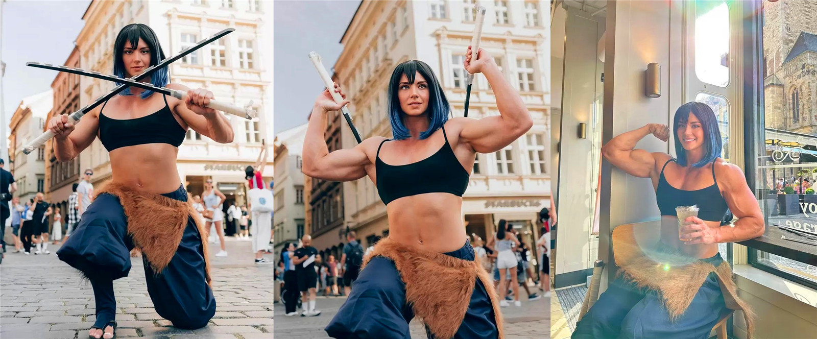 那么肌肉从何而来呢?对于其他Coser来说,是个大问题,而对于“Vladislava Galagan”来说,正好手到擒来,小姐姐的颜值跟肌肉量,让她Cos的嘴平伊之助也获得了网友们的认可。小姐姐的Cos能圈粉无数,核心从不是单纯的颜值优势,而是她用13年自律沉淀的身材精准踩中了角色的核心特质——嘉米的“杀人蜂”气场需要肌肉线条来支撑,伊之助的野性魁梧更是离不开实打实的体格。这也恰恰说明,优秀的Cos从不是“穿对衣服”那么简单,而是让自己真正贴合角色的灵魂,让虚拟角色在三次元有了可信的模样。她打破了“女性Coser必走柔美路线”的刻板印象,用“天使脸蛋+魔鬼肌肉”的独特风格,展现了另一种帅气的美感。