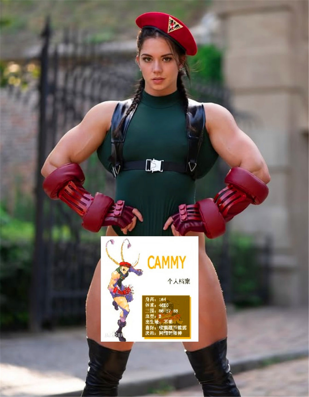遗憾的是:受限于尺度规则,在图片上需要添加一些遮挡,博士也无可奈何,大家凑活看吧。只能说健身的妹子来扮演格斗选手,那是非常的合适。网友们也纷纷表示:“又壮又美”、“这身材是相当的哇塞”、“我梦想中的嘉米”、“终于让我见到了什么叫天使颜值,魔鬼身材”、“希望她能来掐死我”、“《街头霸王》真人电影应该找你去演啊”等等。