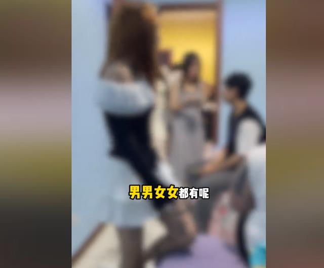 博主跟着小妹儿来到那个坐满了男男女女的屋子,床上、沙发上哪都坐有人。这一屋子人,打麻将都能凑出来两三桌了。