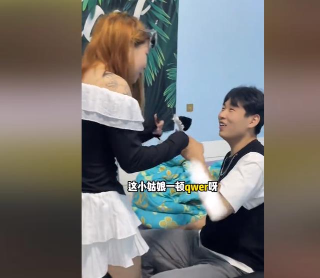 没想到博主刚想开口问,精神小妹跑去和她妈吵架了。刚和她妈吵完,紧接着又去和屋里一个男的打闹起来。