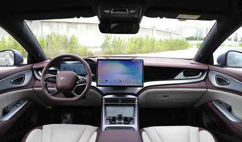 其中,12.8英寸或15.6英寸的自适应悬浮中控屏非常引人注目。它的大小适中,显示效果清晰细腻。无论是查看地图导航,还是观看多媒体娱乐内容,都能提供很好的视觉体验。而且,它搭载的智能座舱高阶版 - DiLink 100车机系统功能非常强大。这个系统操作简单便捷,界面设计人性化。你可以通过语音控制来操作导航、多媒体等功能,不需要手动输入,大大提高了驾驶的安全性。比如说,当你说“我要去某某地方”,车机系统就能快速规划好路线,并且在导航界面上清晰地显示出来。
