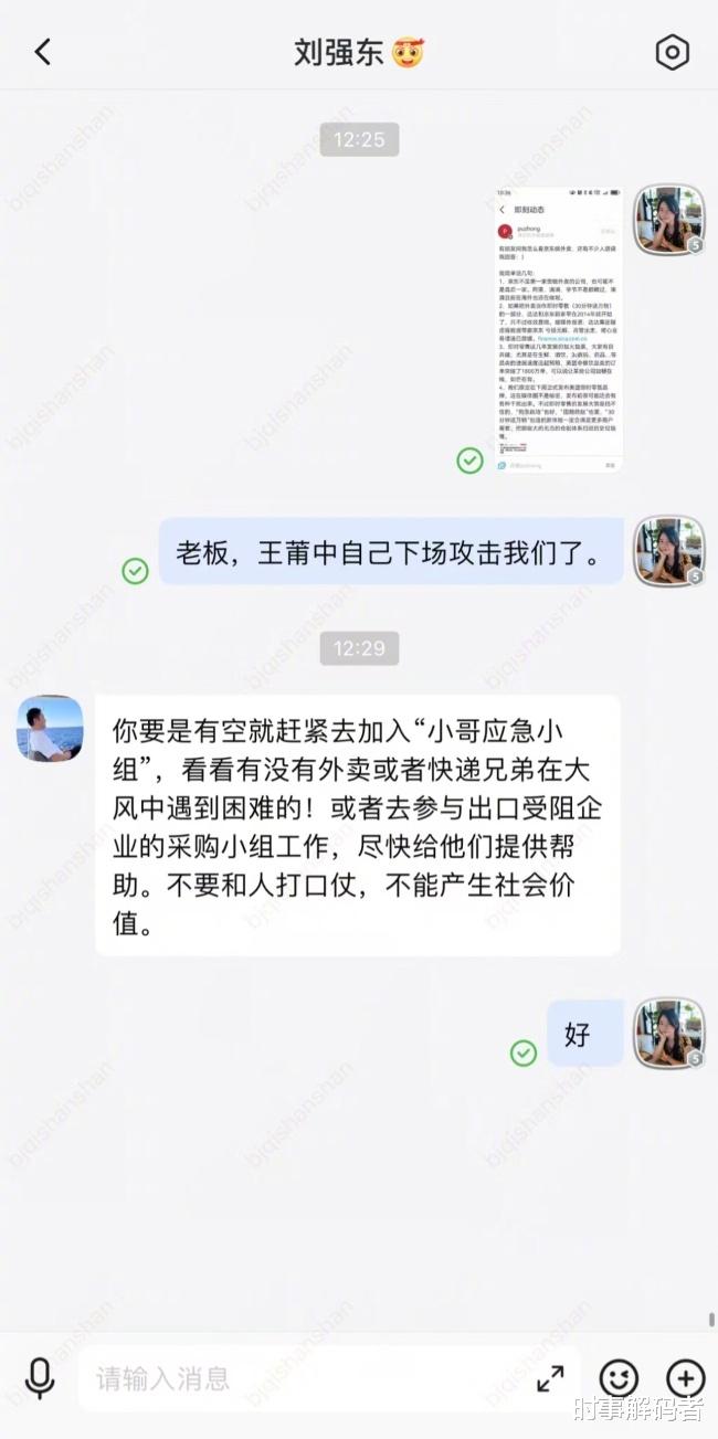 当日,京东集团新闻发言人齐珊珊 在朋友圈发布了一则与刘强东的对话截图。刘强东内部回应称:
