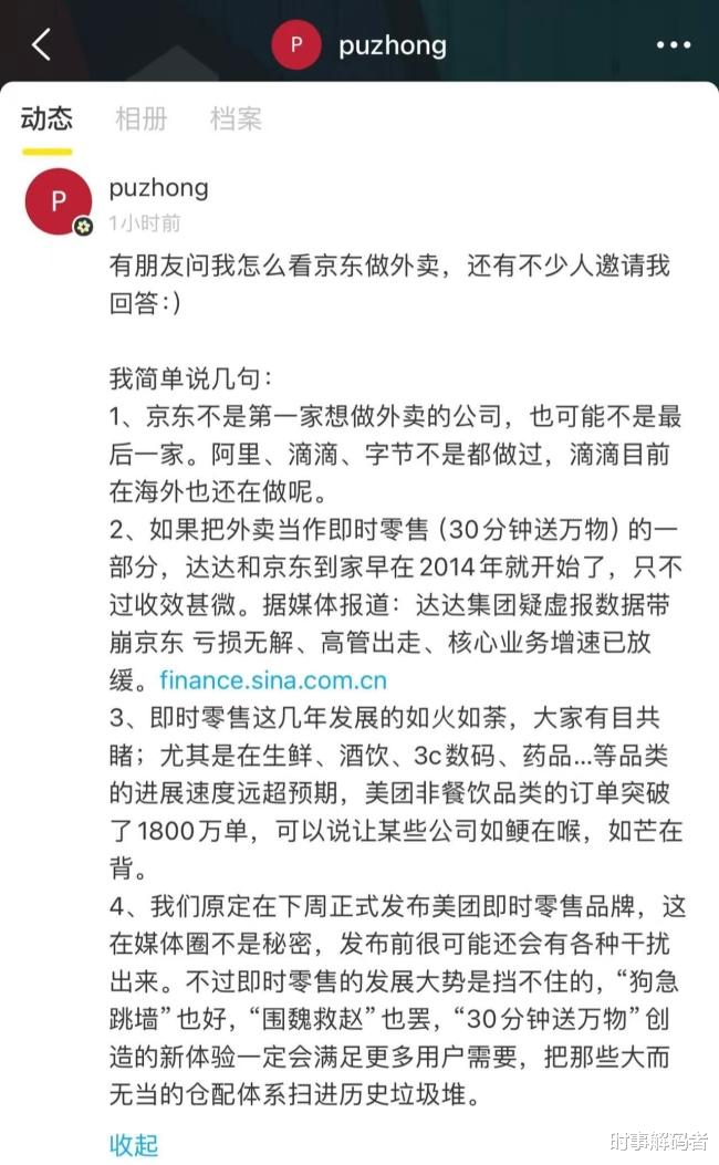 >“京东不是第一家想做外卖的公司,也可能不是最后一家。阿里、滴滴、字节不是都做过?滴滴目前在海外也还在做呢。”