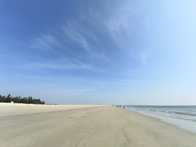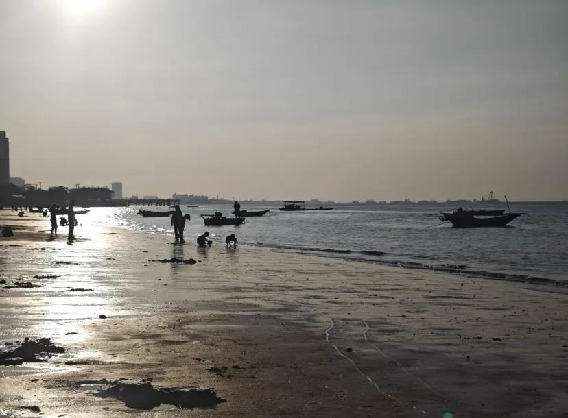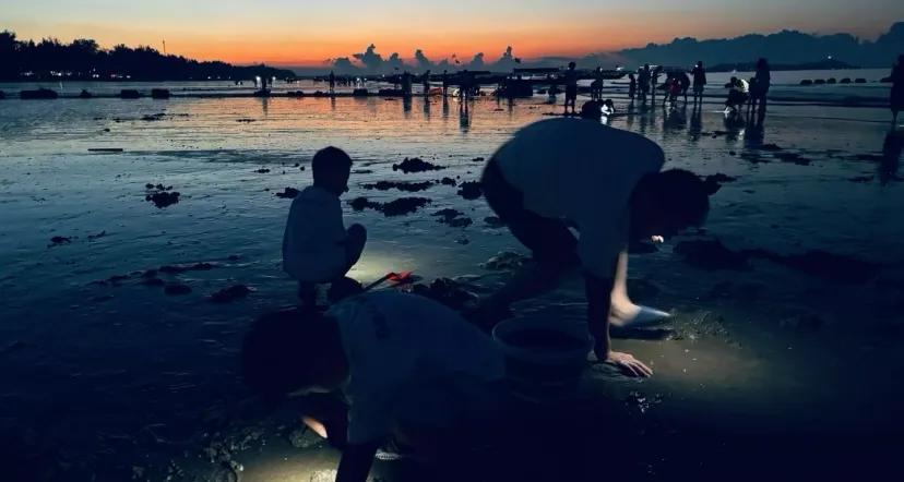 傍晚的日落更是一大特色,当夕阳缓缓坠入海面,会从橘色逐渐变成淡紫色,天空被晕染成橘粉渐变的画布,海浪波光粼粼像撒了金箔,岸边的树林勾勒出剪影,和沙滩上的人群一起,构成了绝美的画面。这里海滩上贝壳丰富,螺类居多,退潮后可以捡到各式各样的贝壳,充满乐趣。