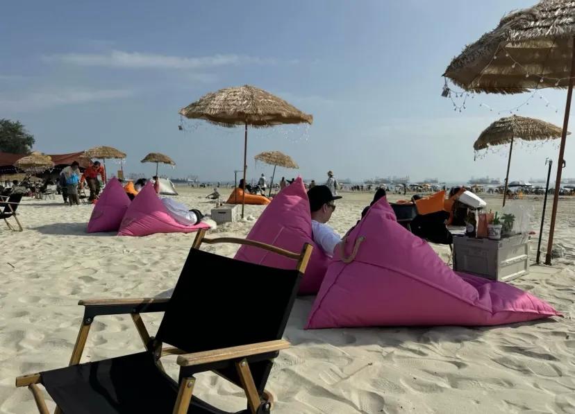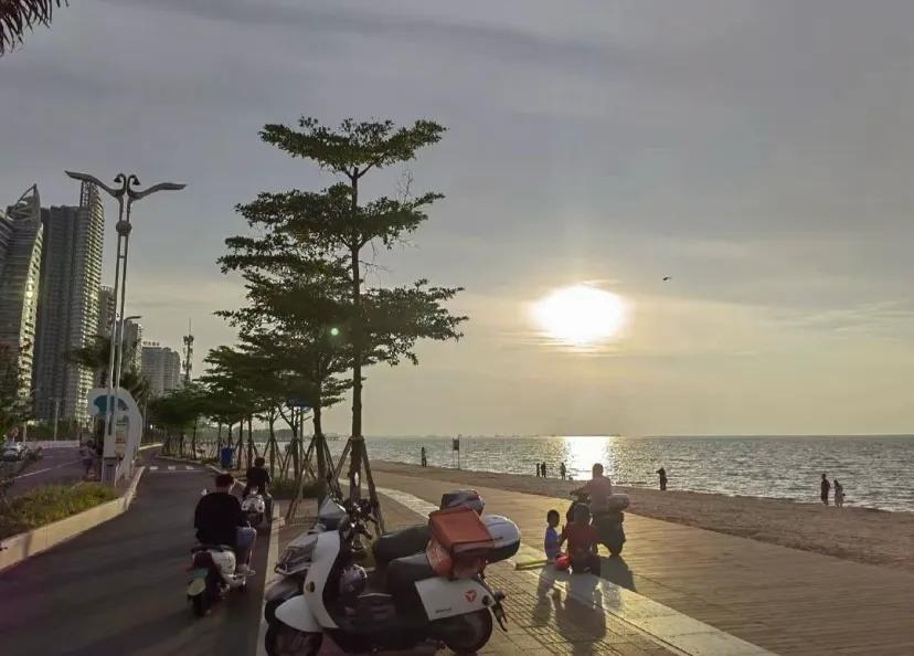 海风轻拂,海浪温婉,近处的沙,前面的海,后面的街,没有太多的装点,自然天成的南国风光。金滩滩平坡缓,滩涂里小螃蟹在打洞,贝类的点缀成为亮点,也引来了不少赶海的人们享受着大海的馈赠。如果你喜欢安静,也可以找一个安静的角落,感受海风轻拂脸庞,海浪轻轻吻过脚踝,所有的烦恼仿佛都被冲刷得干干净净。