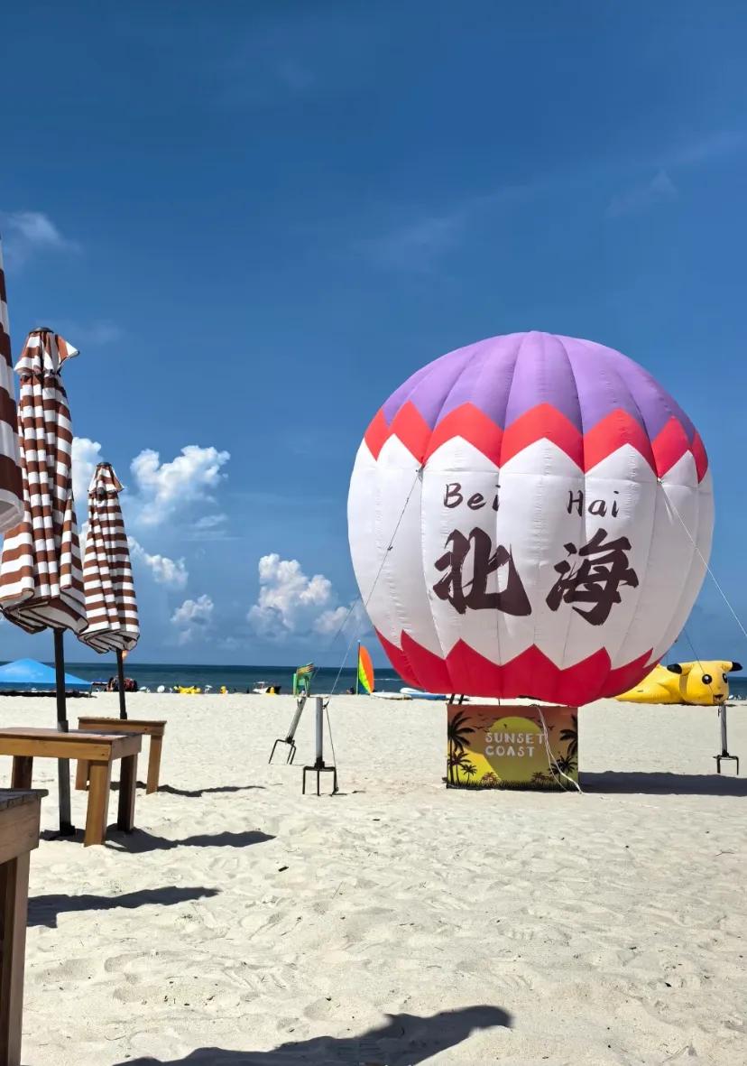 游览攻略:1.北海银滩有五大入口,入口1: 北海银滩欢乐港湾区,有罗马建筑、营地草坪,适合浪漫情侣打卡拍照;入口2: 北海银滩秀映潮雕区,有一个巨大的球形银色人鱼雕塑,周末晚上会有音乐喷泉灯光秀,非常值得观看;入口3: 北海银滩银沙逐浪区,有北海银滩四个字,能拍到“天下第一滩”的石头;入口4: 北海银滩鱼游广场 有冰凉馆和海洋馆,含海底隧道、美人鱼表演等;入口5: 北海银滩罗马广场,很多东南亚元素。各入口都是免费的。