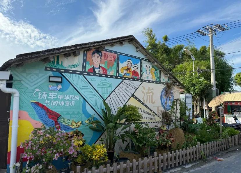 流下村流下村是位于冠头岭海滩西边的一个小村子,据说始建于清咸丰年间,选第二批全国乡村旅游重点村名录。流下村宁静而美好,一座座小房子坐落在山脚下,两旁的村屋墙上涂刷着各种艺术的图案,装饰成小清新的风格,散发着田园风光的美妙气息,每一帧都像闯进了宫崎骏的漫画里,很适合拍照。