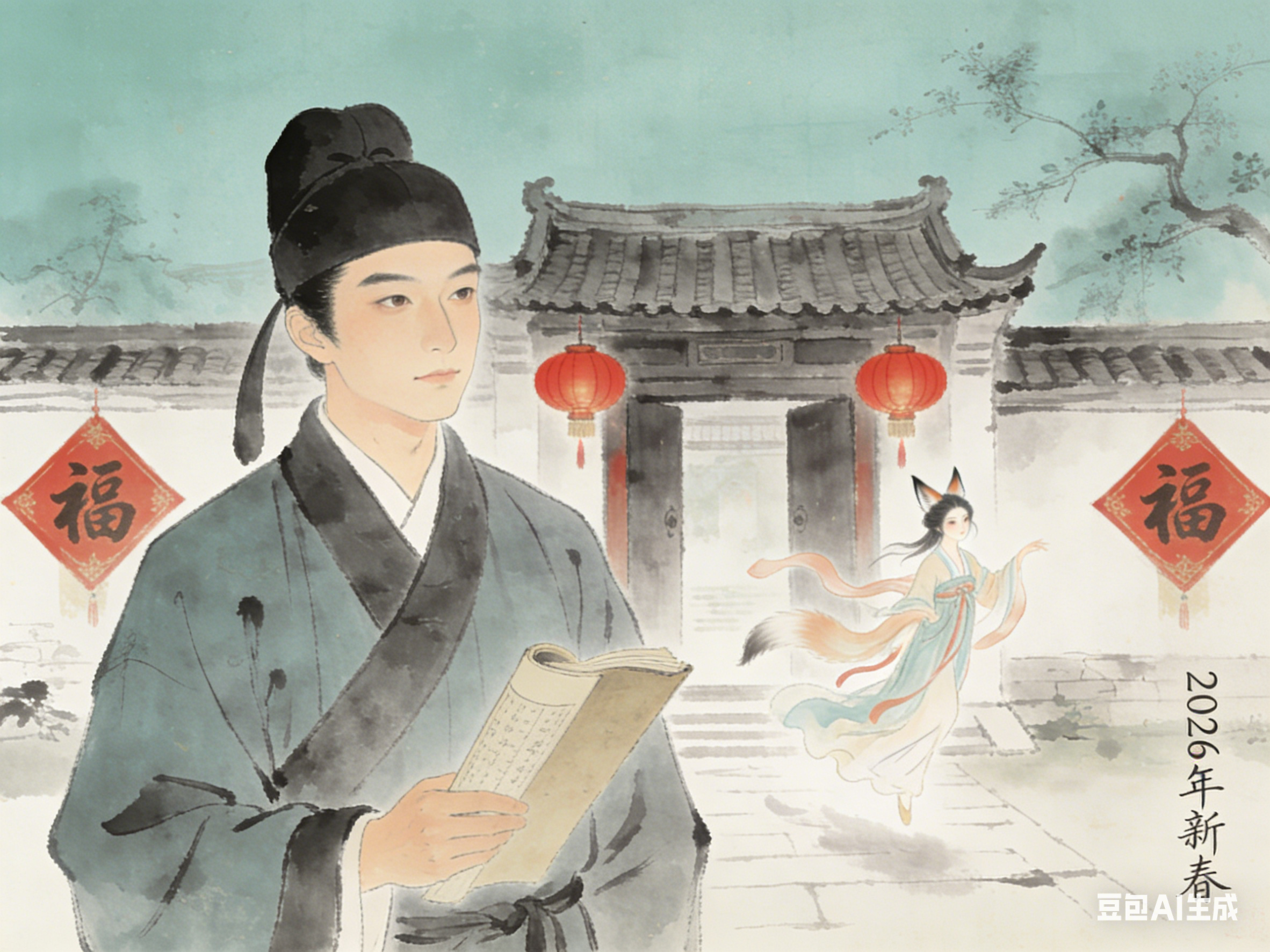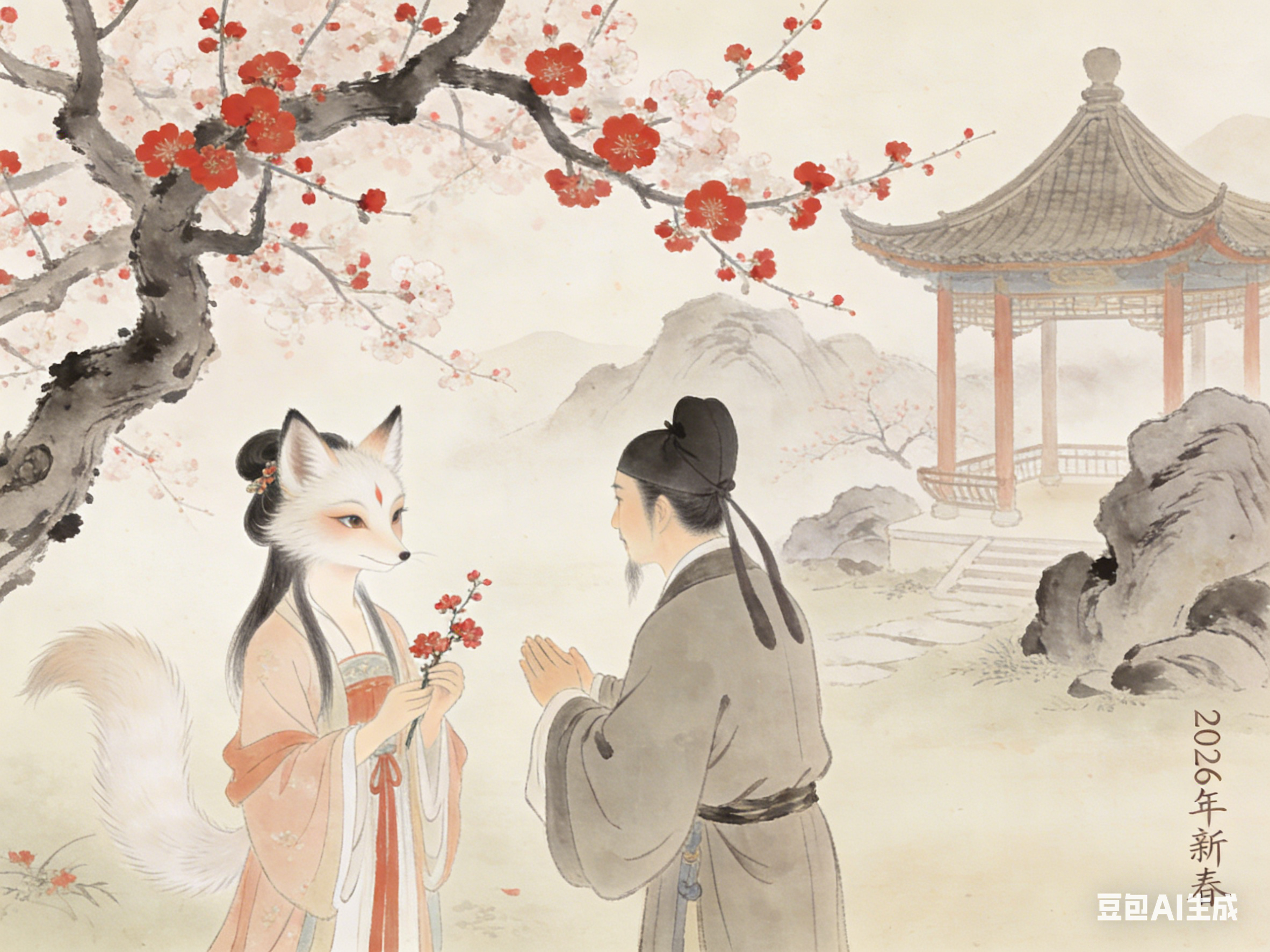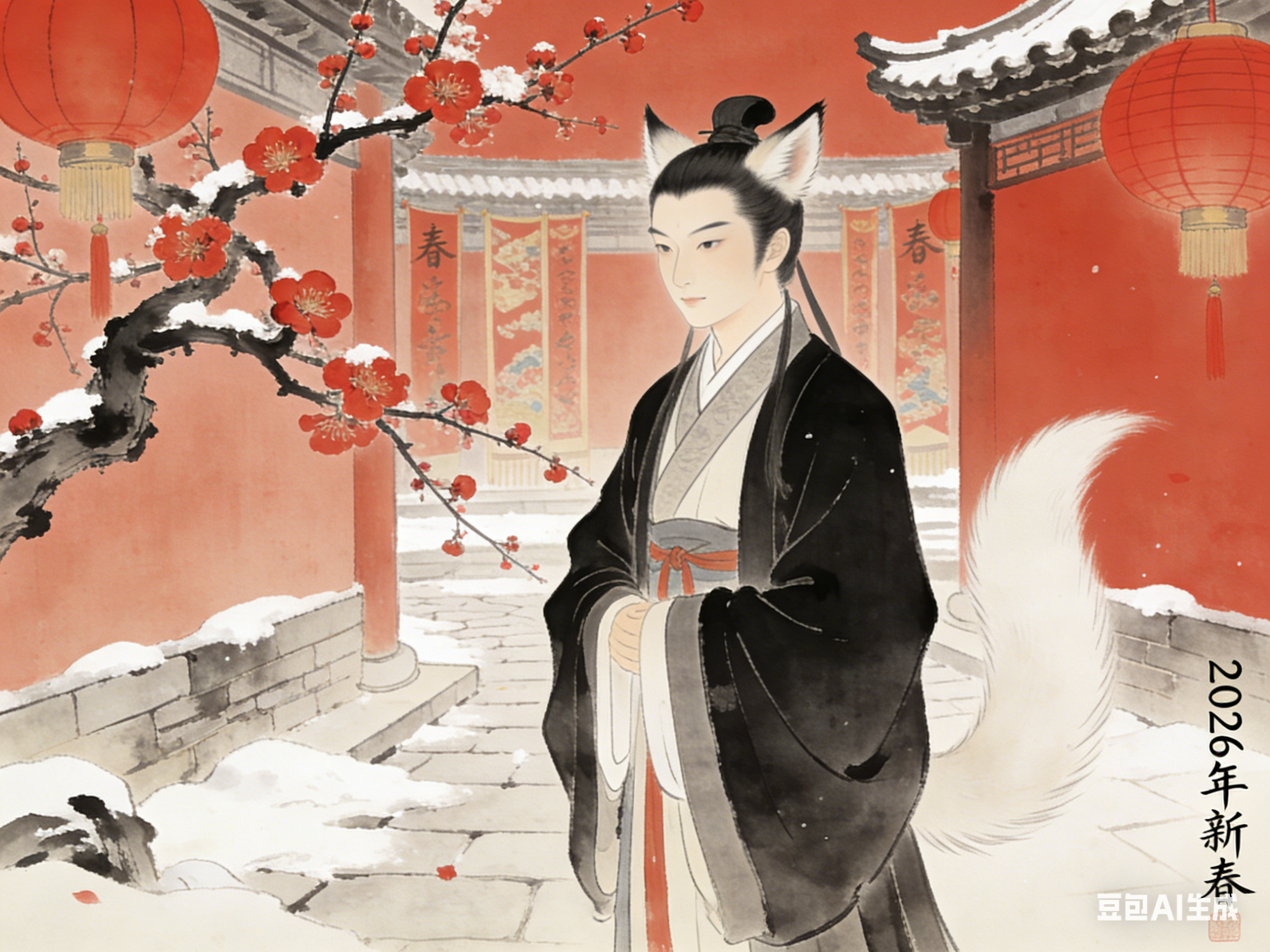 狐影承载情义与坚守,是精神内核;梅香传递雅韵与吉祥,是文化点缀;马岁彰显进取与生机,是时代底色。三者相融,狐影伴梅香,梅香映马岁,马岁润狐影,形成“聊斋狐影伴梅香,马岁春声入古卷”的雅致意境,也构成了中式新年的文化内涵。
