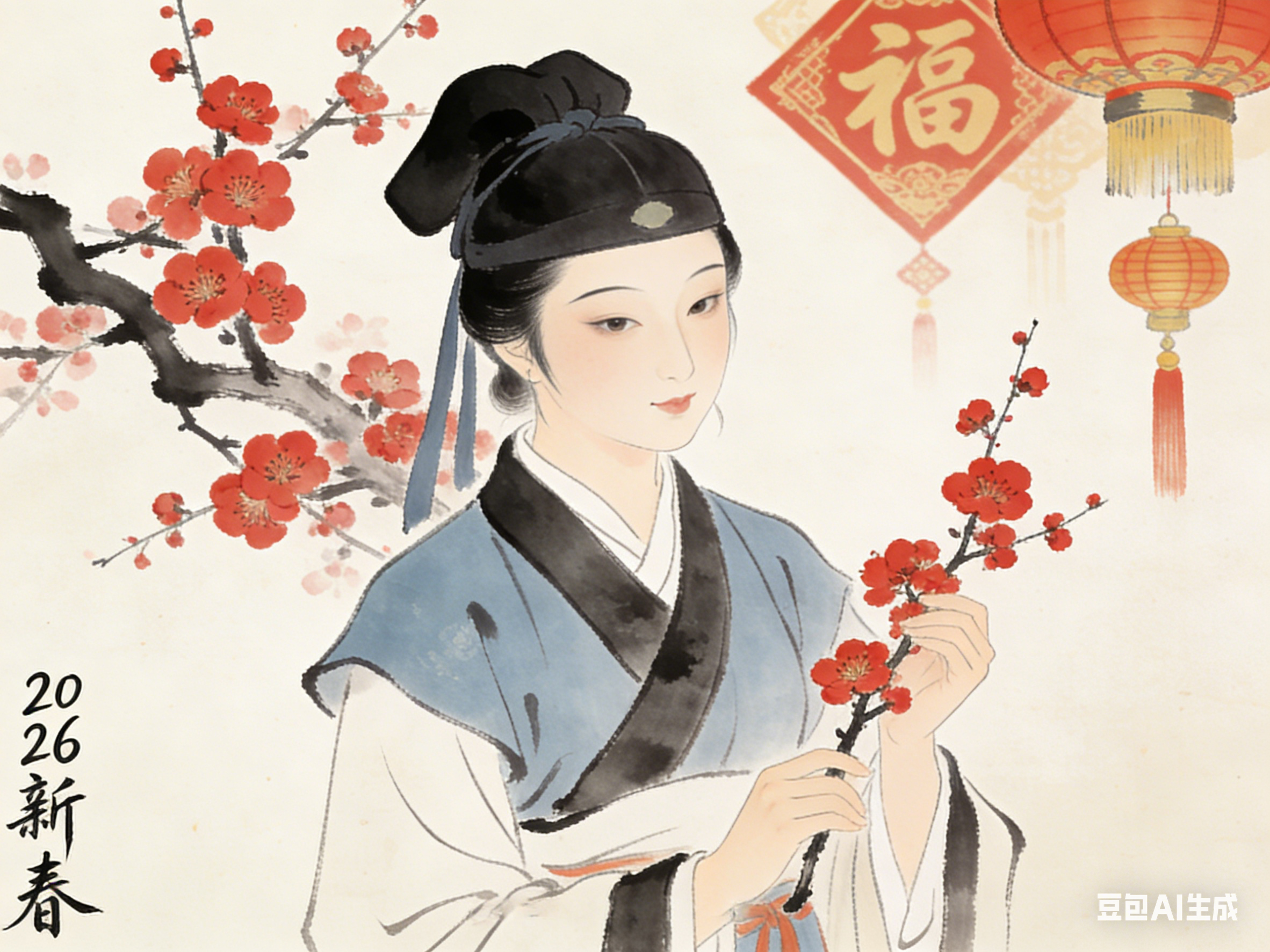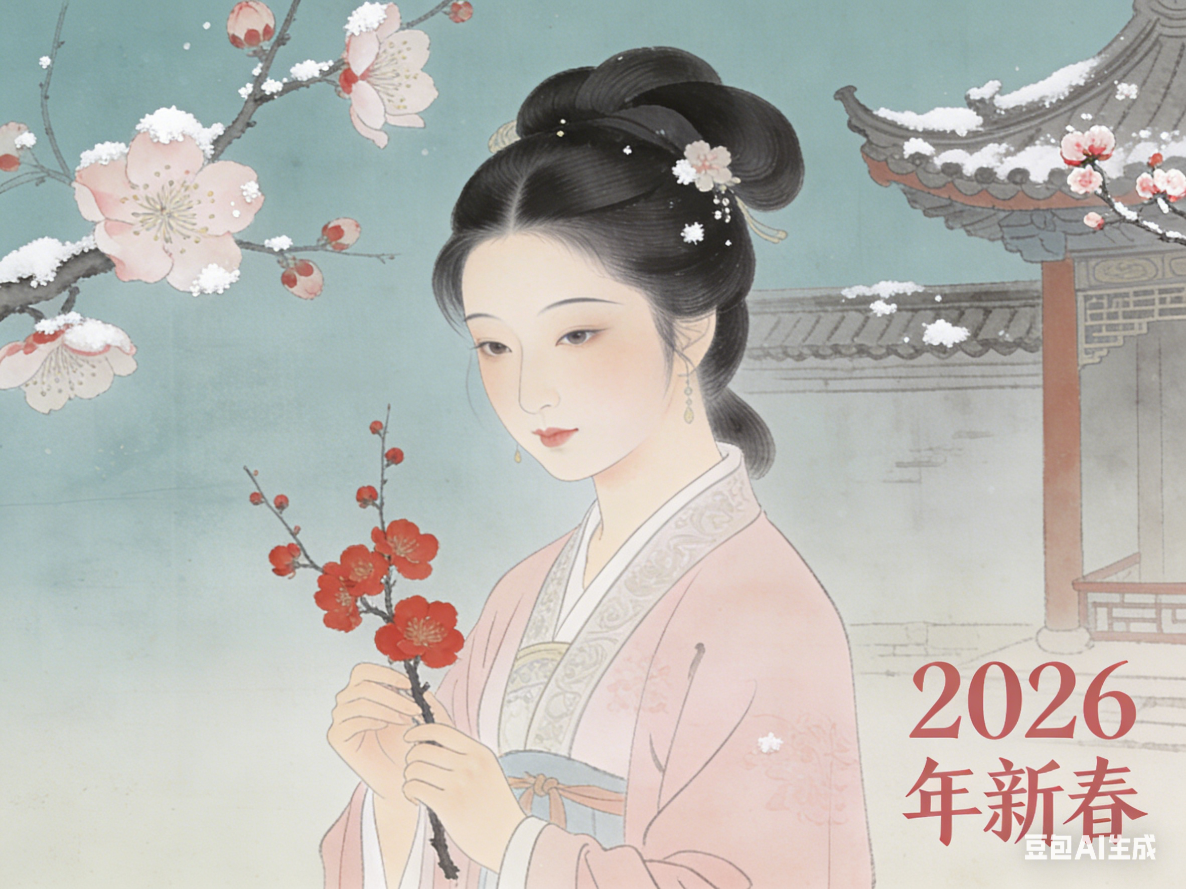新春时节,北方瑞雪纷飞,南方梅蕾初绽,“寒梅映雪”成为新春标志性景致。民间有“梅开五福”之说,五福即长寿、富贵、康宁、好德、善终,梅花成为新春祈福的核心意象。