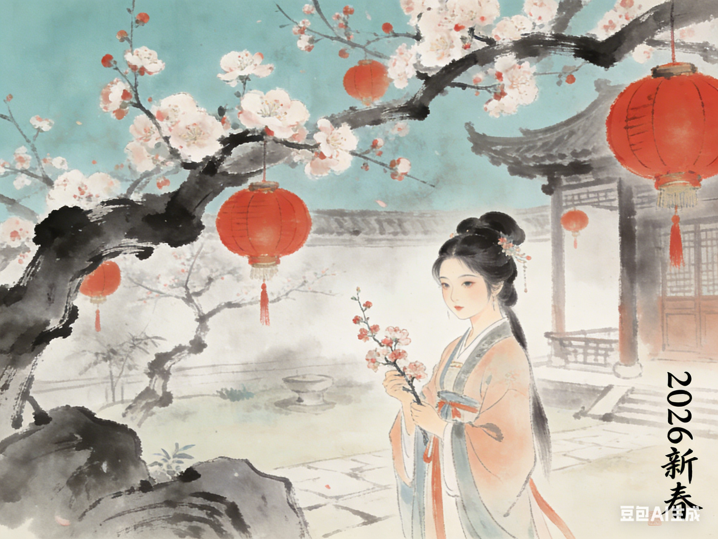 清灯代表着宁静与平和,新春佳节,暂抛尘俗纷扰,点一盏清灯,静坐窗前,读一卷聊斋、赏一枝梅花,能抚慰一年的疲惫,让心灵回归宁静,在喧嚣的年味中,寻得一份内心的平和。