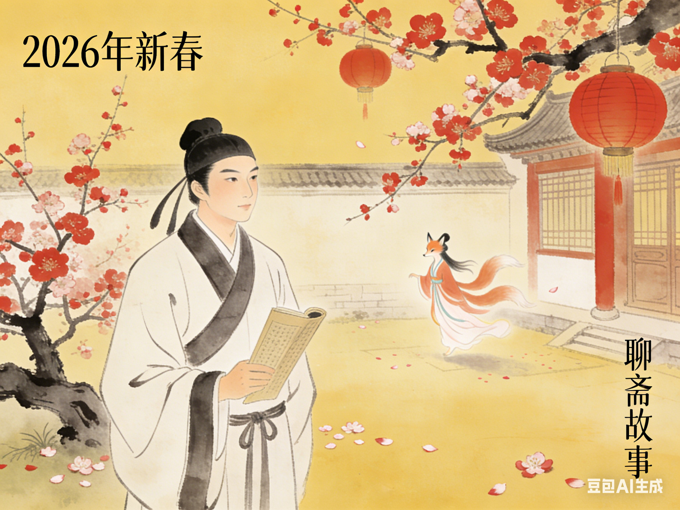 丙午马年踏风而至,春节承载华夏辞旧迎新的集体记忆,串联文学经典与民俗文化脉络。《聊斋志异》以狐鬼花妖为骨、人间烟火为肉,清冷笔墨间藏着中式浪漫与处世哲思。梅花傲立寒冬,添新春第一抹雅韵;马为六畜之首,注入速度与力量,是祥瑞进取的象征。新春暂抛尘俗,点一盏清灯,展一卷聊斋,于狐影梅香间听马岁春声,话古今新祥,在经典与民俗的交融中,探寻中式新年的文化底蕴与精神内核。