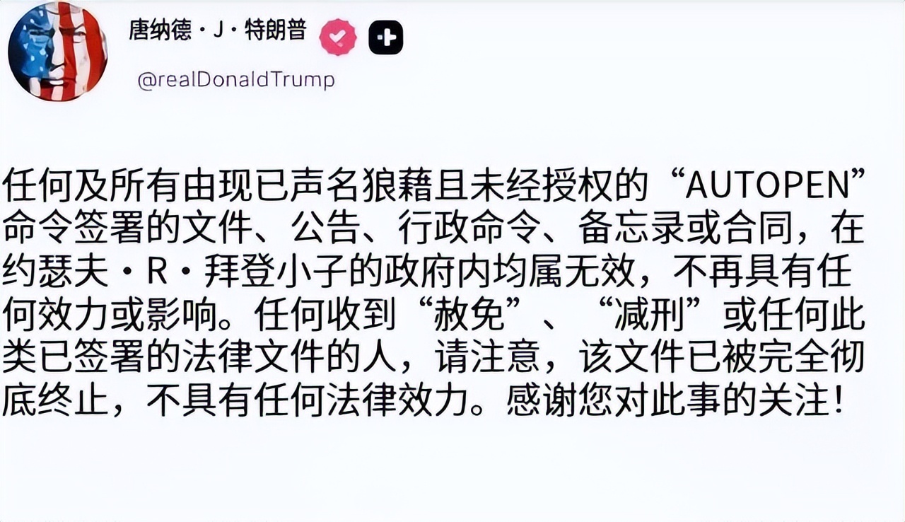 公众开始质疑,如果总统连“今天是星期几”都需要提醒,那么所谓的“授权”还有多少含金量?如果像赦免“国会山事件”相关人员这样极其敏感的文件,也是由幕僚通过机器代劳,那么民选总统的意义究竟何在?“