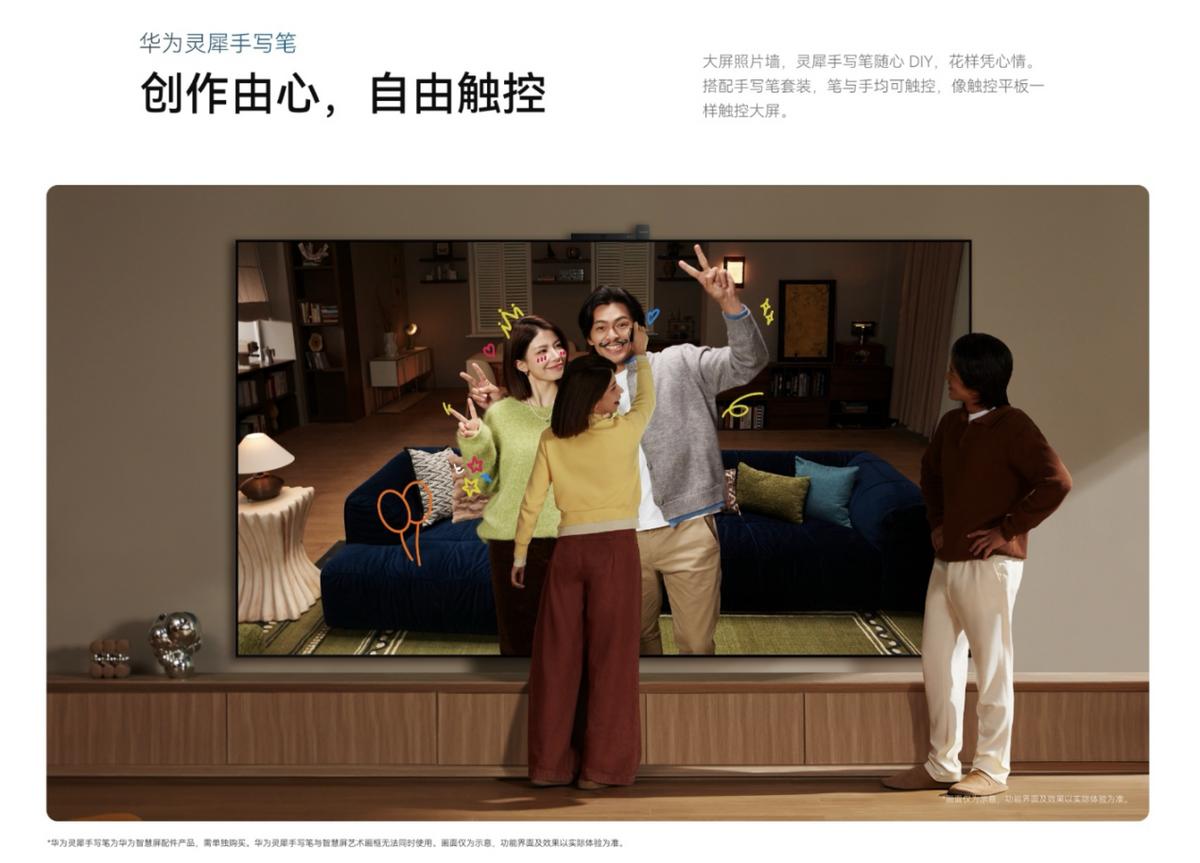 不仅如此,华为Vision智慧屏 6还首次支持了华为灵犀手写笔。在星闪技术的加持下,这支手写笔配合即插即用的感知模块,实现了毫米级的精准感知。孩子们可以在大屏上涂鸦画画,大人可以在居家办公时对文件进行全局批注、扫码分享,极大拓宽了大屏的使用边界。
