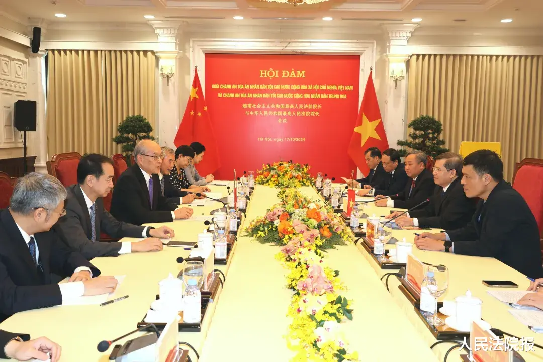 张军向陈青敏、阮和平介绍了中国共产党二十届三中全会有关情况,围绕共同感兴趣的数字法院建设、国际商事纠纷多元化解、环境资源审判等介绍了中国法院的做法。张军表示,近年来,在习近平新时代中国特色社会主义思想指引下,中国法院深入贯彻习近平法治思想,积极探索人工智能在司法领域的应用,部署推进数字法院建设,促推审判质效明显提升。希望在两党两国领导人的战略引领下,与越南法院进一步深化交流互鉴,为高质量共建“一带一路”提供有力司法服务,为推动中越命运共同体建设贡献更多司法力量。
