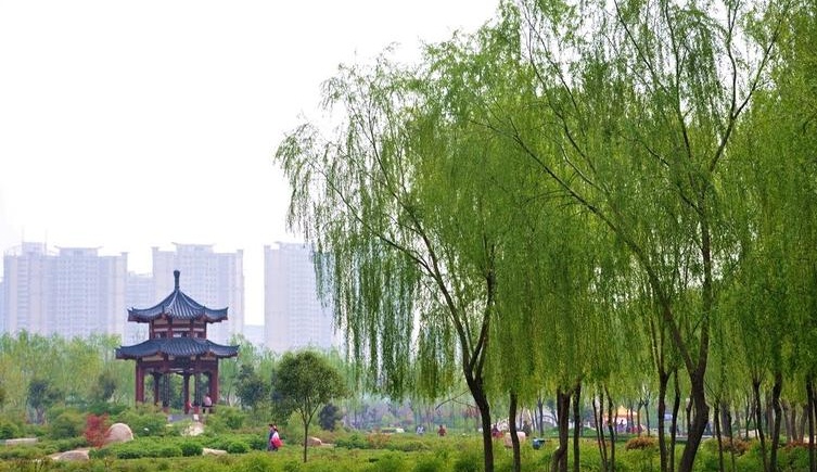 在淮河流域,柳树是一种常见的绿植。柳树姿态婀娜,枝条细长下垂,叶子细长如眉,春天里还会开出毛茸茸的柳絮球。它适应性强,能在多种土壤条件下生长,耐水湿,在河边、湖畔等地随处可见。