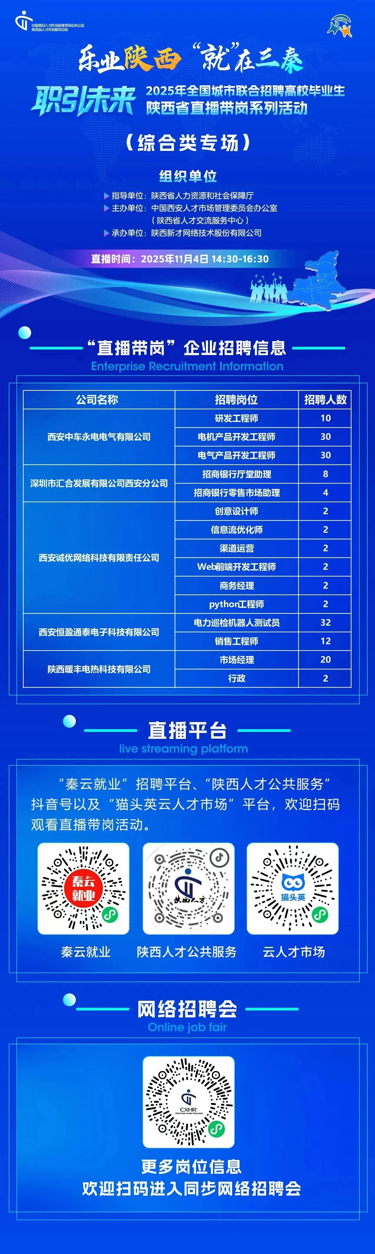 “乐业陕西‘就’在三秦”直播带岗活动(综合类专场)邀您来参加