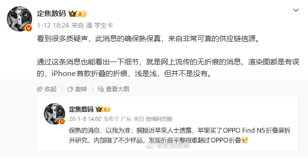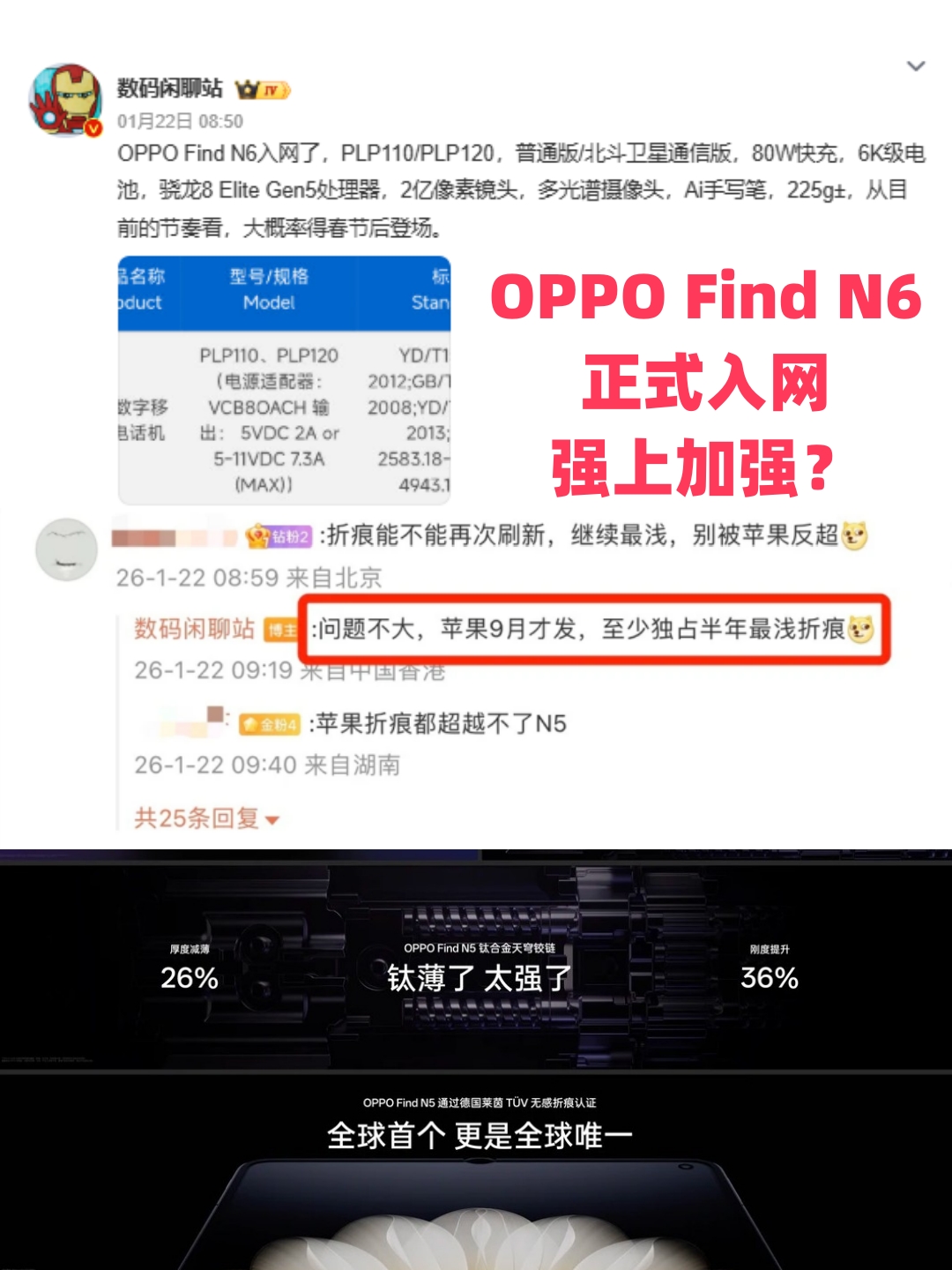 站哥对Find N6爆料评价”至少是半年内最浅折痕机型“