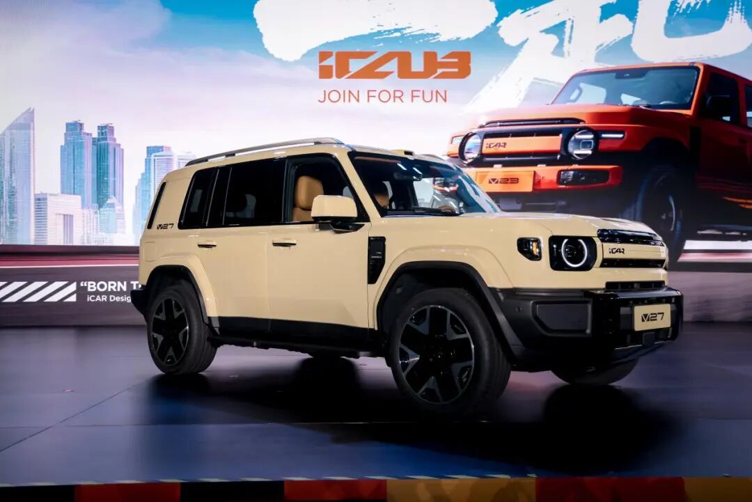 iCAR,则在个性化赛道留下了鲜明印记,最近上市的iCAR V27,也延续了这样的路径。其并非一款简单的增程方盒子SUV,而是以“父母的大玩具,孩子的游乐场”为产品原点,打破传统硬派越野与家用SUV的品类壁垒,官方将其定义为“家庭新硬派”。