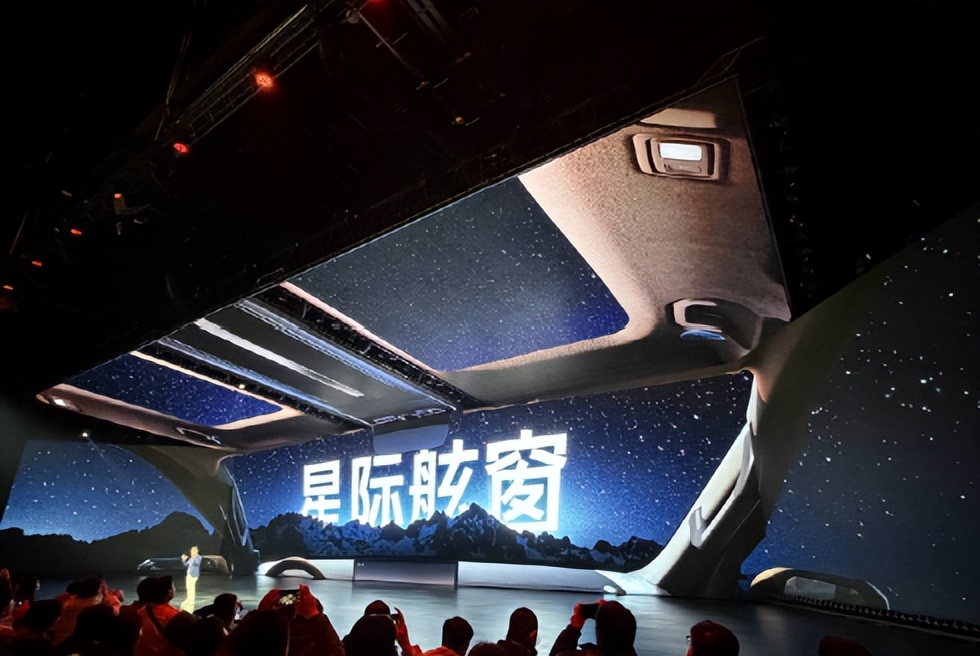 苏峻博士开玩笑地表示,要尽量减少对设计的介绍。但有些东西是藏不住的,甚至从发布会现场的舞台设计就能窥见一斑:头顶上方悬吊着两块巨大的屏幕,造型与位置恰好呼应了iCAR V27车内标志性的星际舷窗双天幕。