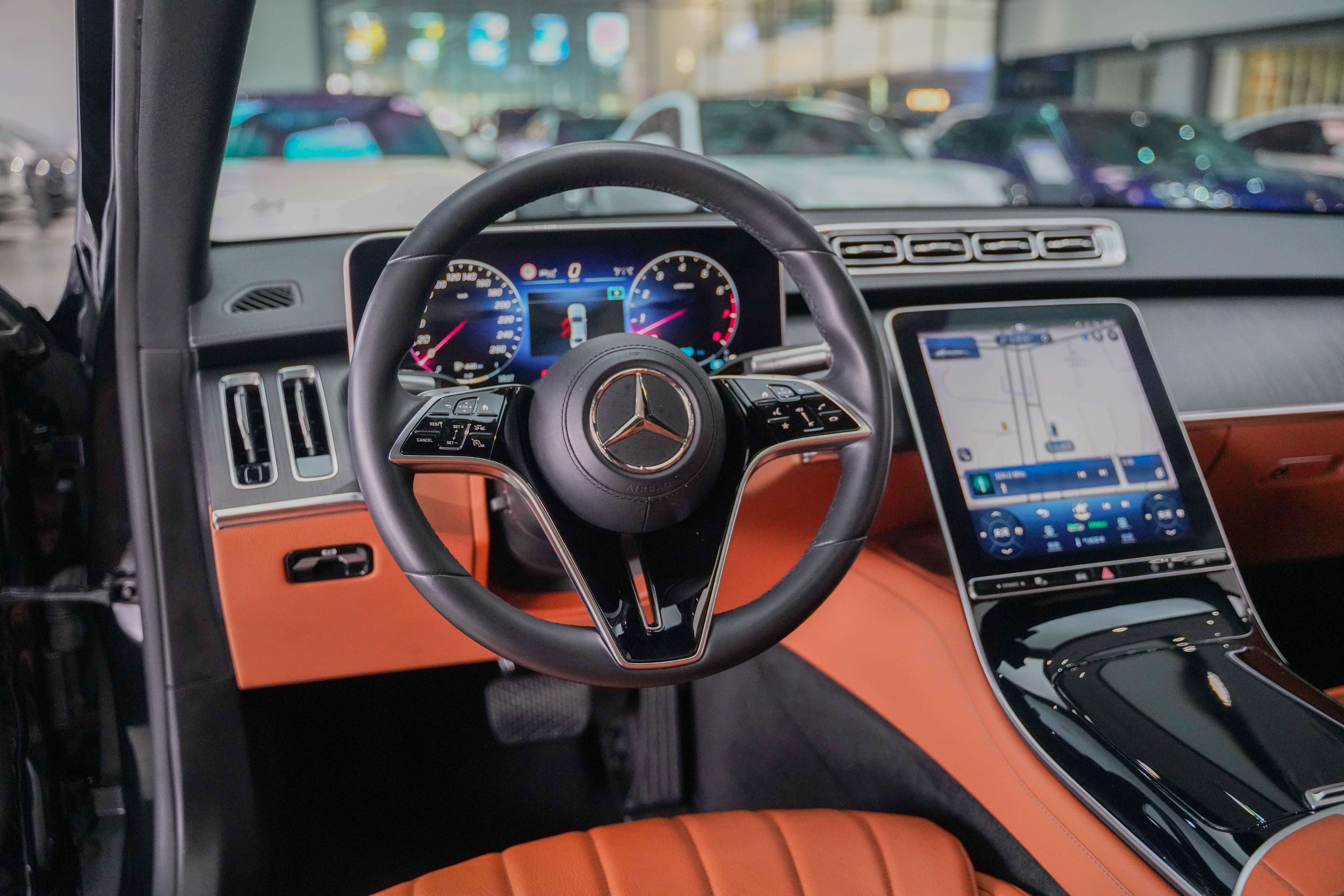 在这辆奔驰S级 2021款 改款 S 400 L 商务型上,其搭载2.5T 313马力 L6 48V轻混发动机,匹配9挡手自一体变速箱,后驱,能爆发出450N·m的最大扭矩,官方百公里加速时间5.9(s),WLTC综合油耗7.8升,动力充沛且不失经济性。车身尺寸方面,该车长宽高分别为5290x1921x1503(mm),轴距为3216(mm),超3米的轴距带来更加宽敞的内部空间和更舒适的乘坐体验。座椅采用真皮材质,不仅触感柔软细腻,还易于打理,提升车内豪华氛围。全景天窗设计增加车内采光,营造开阔视野,为乘客带来更好的乘坐感受。值得一提的是,该车配备L2辅助驾驶功能,这一配置在同级车型中处于领先地位,为驾驶者提供更加便捷和安全的驾驶体验。