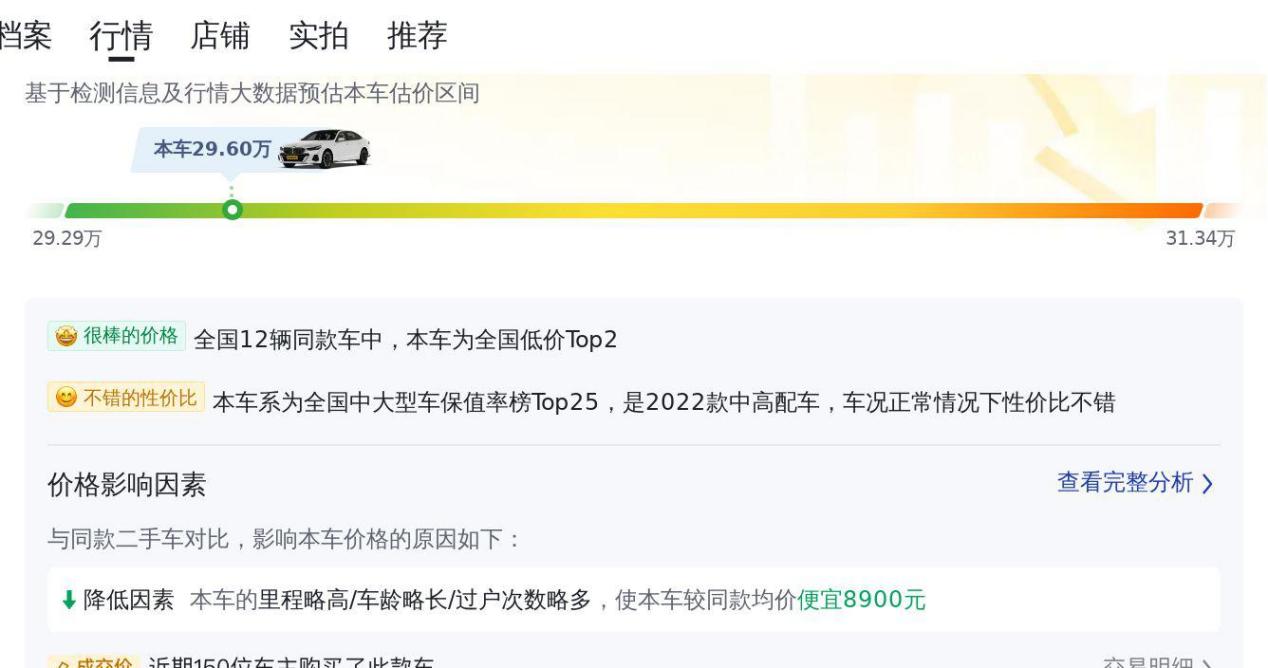 回到这辆二手车本身,29.6万的价格,在二手车市场处于什么位置呢?根据懂车帝的数据,同款车型的市场行情价大致在30.6万到36.12万之间。看起来,这辆车的报价似乎略低于市场均值,但别忘了,最终成交价还受到车况、里程、过户次数等多种因素的影响。6万多公里的里程,比平均值略高,两年多的车龄,也比平均值略长,这些都会影响最终的成交价格。