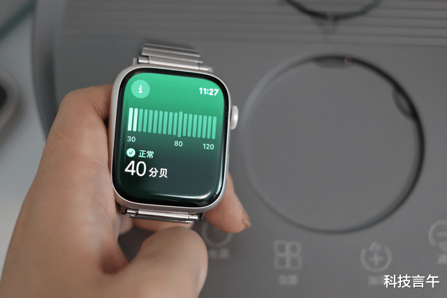 至于噪音?很多人担心水泵嗡嗡响影响睡眠。我用苹果手表里面的声音测试功能打开,贴在主机旁边测,只有40分贝。夜里开着,我几乎听不到任何声音。之所以如此,是因为它用了特制的封闭式无刷水泵,再配上CVC双层隔音舱,把水流声压到最低。