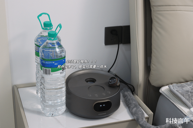 接下来就是关键一步:先加水,再开机!千万别反着来(使用矿泉水)。把主机水箱加到最高水位线,然后通电开机,让水泵开始循环。另外我还发现主机的操作面板设计得特别直观,温度调节、开关机都一目了然,爸妈用起来也毫无压力。
