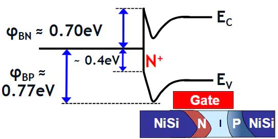 型掺杂:与n型掺杂相反,在半导体中引入受主杂质,受主能级靠近价带顶在场效应晶体管结构中,对栅极施加负电压会吸引空穴聚集在半导体表面,。同样,吸附吸电子性的分子会从材料中抽取电子,也导致费米能级下移。