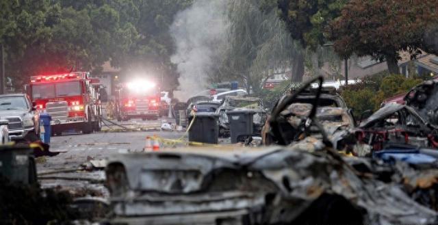 5月22日凌晨,美国加州圣迭戈的居民被一声巨响惊醒,只见一架小型飞机撞上电线后,拖着火球坠入社区,烈焰瞬间吞噬三栋房屋。