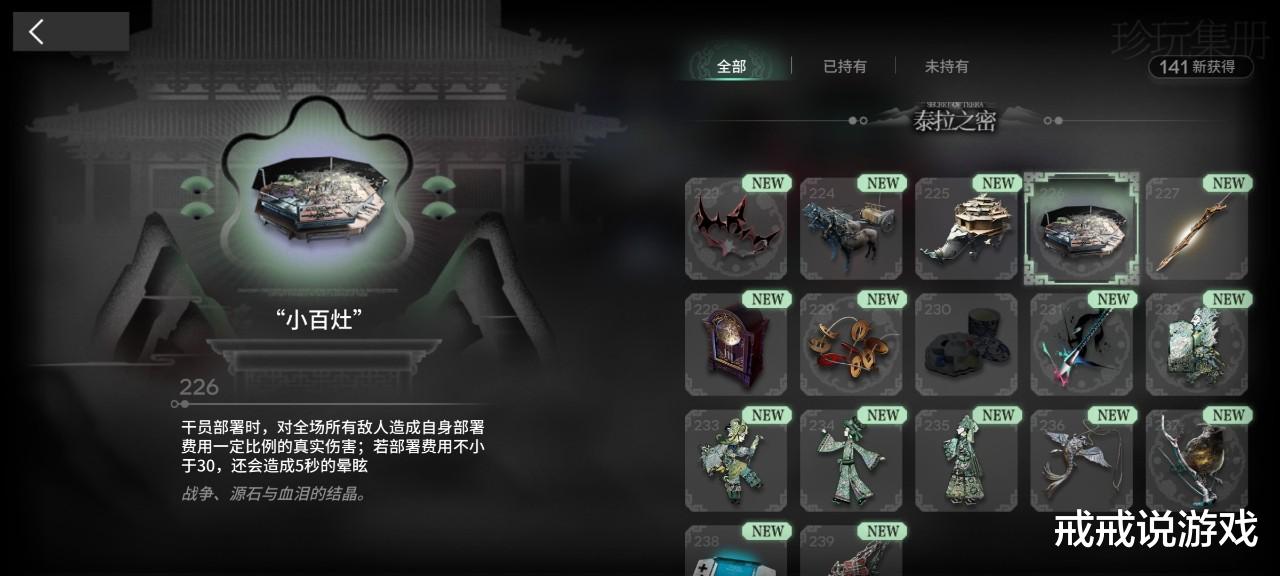 要说最内鬼的藏品,小百灶可以说是其中的佼佼者。当你有了它,有时候时封根本就打不了。不过抛开它的内鬼效果,纯伤害方面,前期部署少伤害不行,后期因为是固定型伤害,也不行,而且还是和费用正相关,比岁怒还抽象。