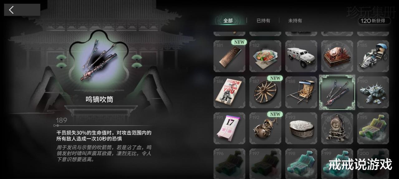 鸣镝吹筒也挺难用的其实,在止变里更是大哥超级无敌藏品。它的效果是干员损失30%的生命值时,对攻击范围内的所有敌人造成一次10秒的恐惧,于是乎大哥会被一路恐惧逼到蓝门,拦都拦不住!当然也并不是一无是处,比如这个藏品可以救穷局录忆的,用工具人反复把大哥逼到右侧红门让大哥远离阵线,延长飞剑距离增加处理时间,杀大哥的话,放光飞剑,电弧一技能t住用骋风磨死就好。
