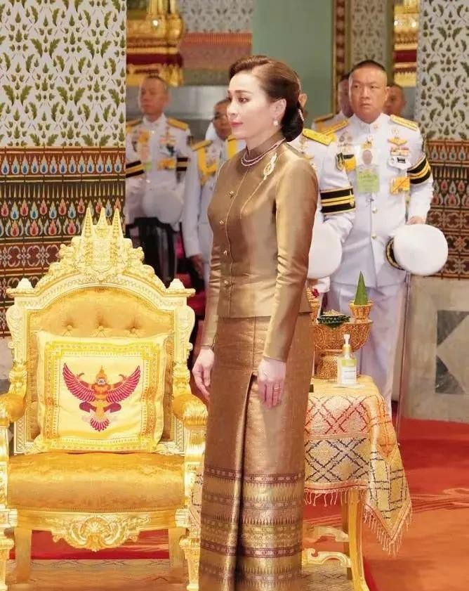 相比之下,苏提达王后还是一如既往地优雅得体。当天她穿着传统服装亮相,那叫一个肤白貌美、仪态端庄!要我说啊,能在后宫站稳脚跟这么多年不是没有道理的。