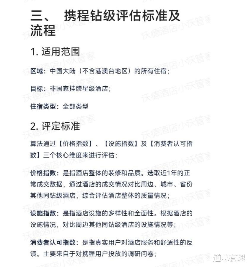 据悉,携程的钻级评估目标是非国家挂牌星级酒店,通过价格指数、设施指数及消费者认可指数三个核心维度来评估。一开始,张凯文所在的酒店还是3钻,上任后花了半年时间整改硬件、培训员工,好不容易冲上4钻,从此就像上了发条,再也不敢停。