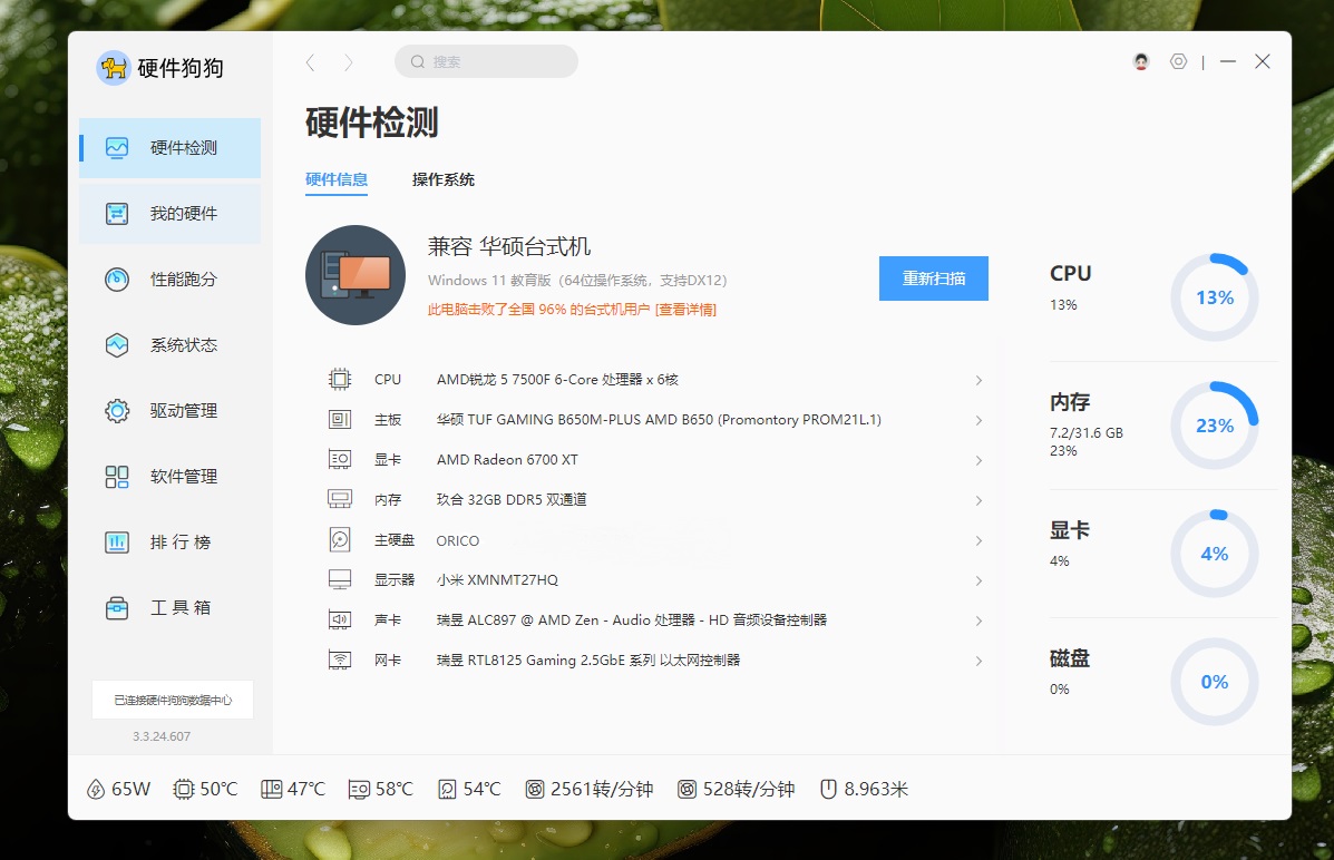 硬件狗狗是简单而专业硬件检测、跑分工具,非常适合主流PC玩家,可以全面检测PC电脑的整体配置,对电脑的处理器、显卡、内存、硬盘进行单项测试。