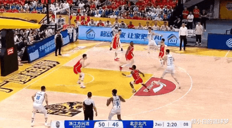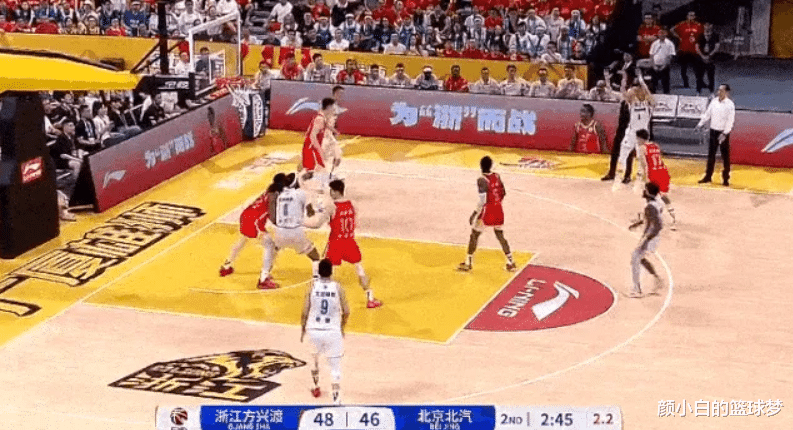 奥莫特好不容易拼下了前场篮板,方硕又一个大角度给弱侧底角出界,直接传到观众席。