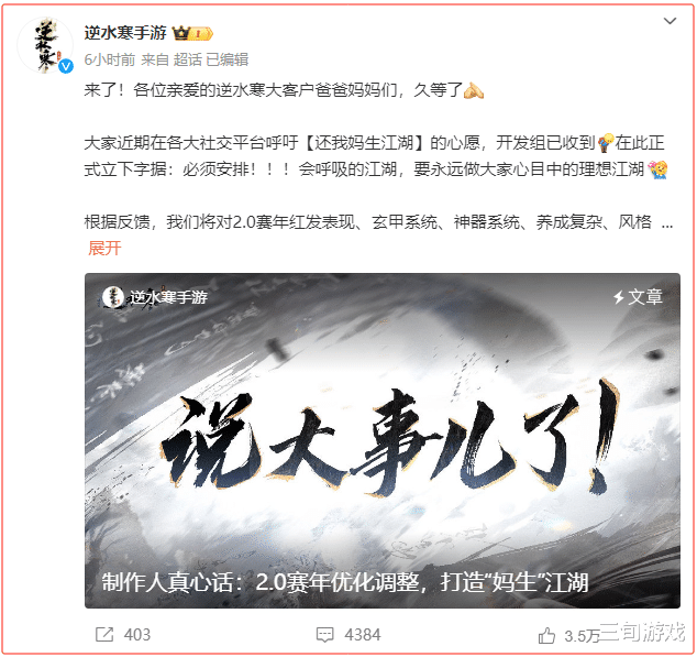 或许你会好奇,《逆水寒》手游哎,这一年来游戏圈里最成功的IP哎,这样的存在,怎么能说是人人都能踩一脚的纸老虎呢?
