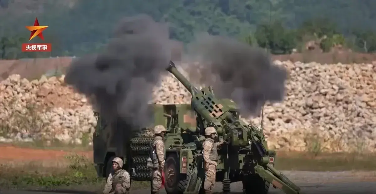日前央视军事等公开报道了解放军南部战区此次演训的画面,通过画面我们可以看到,演习中南部战区参演部队出动了车载火炮、迫击炮、步兵战车等陆战装备,参演兵力演练了沿边境山区公路快速机动、火炮射击等科目,尤其是演习中8门车载榴弹炮齐射的画面非常壮观!同时演习中还进行了排雷分队清理障碍然后用烟雾弹掩护步兵分队进攻等科目,可以看到这场演训非常贴近边境地带的作战特点。