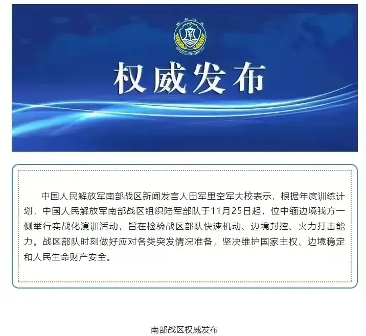 在这样的情况下,解放军果断出手了!前几天解放军南部战区权威发布:将从11月25日开始在中缅边境我方一侧举行实战化演训活动!并且这场演训的目的很明确,那就是检验战区部队快速机动、边境封控以及火力打击能力,同时南部战区强调部队已经时刻做好应对各类突发情况的准备,坚决维护国家主权、边境稳定和人民生命财产安全!南部战区这个权威发布足以说明,解放军已经做好了缅北事态进一步恶化的准备!