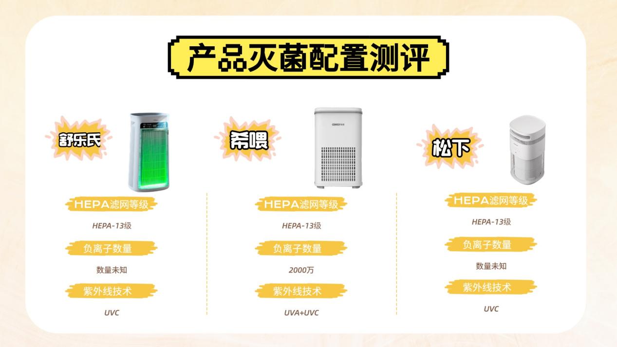 松下:同样配备 H13 级滤芯,并辅以负离子功能,但未配置 UVC 紫外线模块,灭菌深度相对有限,更偏向基础抑菌需求。