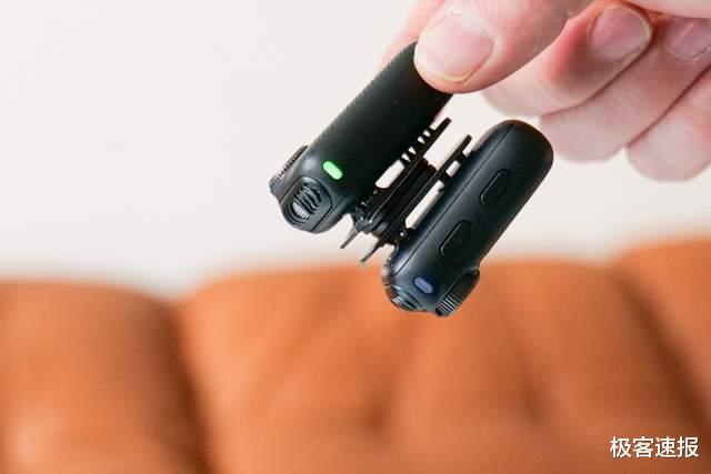 它的发射端可以续航6.5小时,搭配充电仓以后合计可续航24小时,这样就算全天不间断录制电量都不会焦虑的。麦克风有一个接收端和两个发射端,可以进行问答式采访,也可以录制立体声音频。