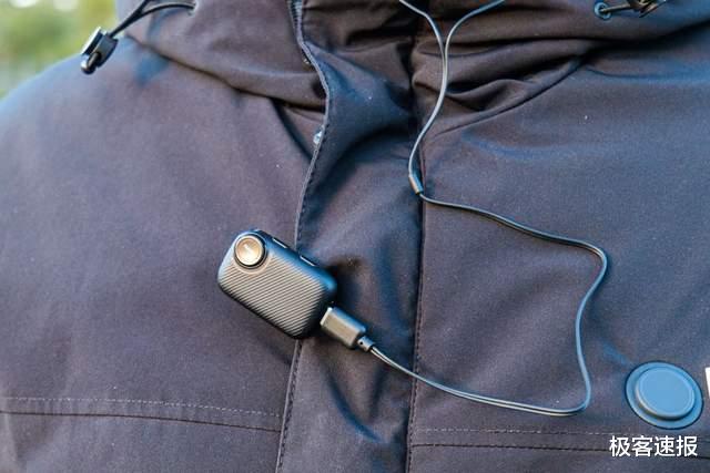 领夹麦当然要有夹子,可以方便的夹在衣领或者前襟上面进行拾音。不过这个领夹麦还搭配了两块吸力很强的磁铁,可以在不适合使用领夹的时候,将麦克风固定在任意位置,实测即便是厚厚的棉服它也能牢固吸合,位置不会自行改变。