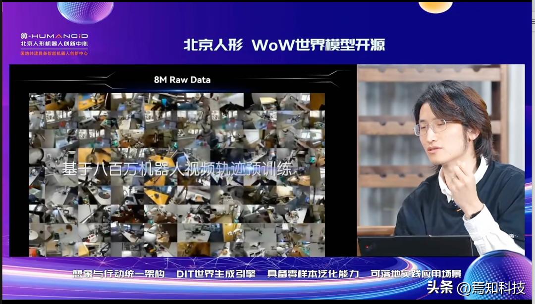 当“魔兽世界(Wow)”以奇幻大陆承载无数玩家想象时,北京人形机器人创新中心在10月16日在晚八点以直播形式,宣布开源了人形WoW(英文WORLD-OMNISCIENT WORLD-MODEL)世界模型,以140亿参数和200万条机器人互动轨迹,在AI领域构建一个更贴近现实物理规律的“真实世界模拟器”。